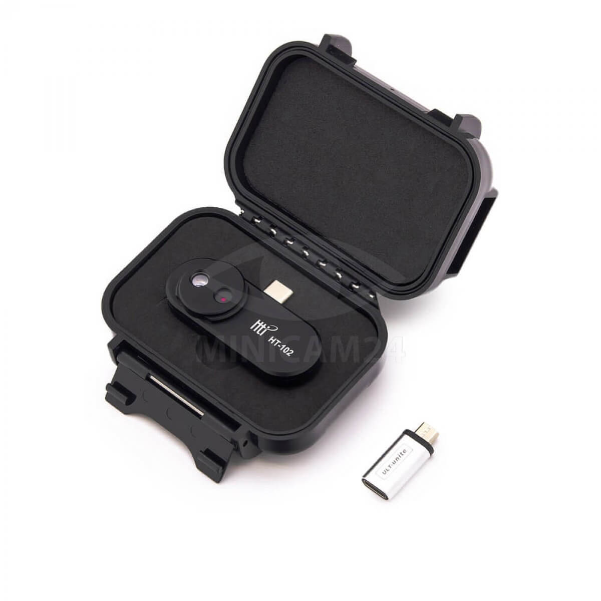 Устройство укрепляется непосредственно к разъему, без кабеля. Таким образом, получается необычайно компактный тепловизор разрешением 640х480, совмещающий изображение видимого спектра с тепловым изображением. Предел измерения температуры от -20 до 300 градусов с точностью до 3 градусов. Прибор служит для любительского и профессионального использования для контроля мест локального нагрева или мостиков холода.